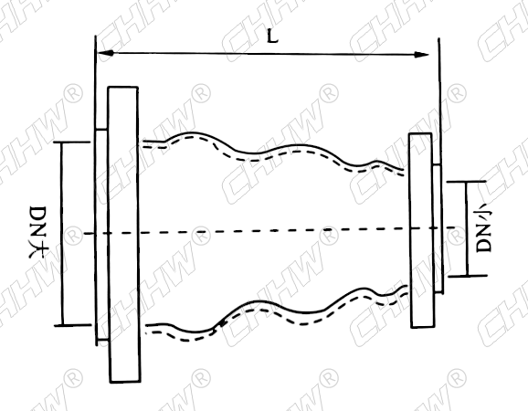 CHHW华威牌KXT-DN50~600可曲挠同心异径橡胶软接头,主要特点是可解决金属管道连接时不同心、不同口径的问题,同时有减震降噪的作用,可节约管道安装零件,节约成本。它由内胶层、锦纶帘子布增强、外胶层复合的橡胶球体和松套金属法兰组成。具有耐压高、弹性好、位移量大、平衡管道偏差、吸收振动、降低噪音效果好、安装方便等特点,可广泛用于供水排水、循环水、暖通空调、消防、造纸、制药、石油化工、船舶、水泵、压缩机、风机等管道系统。普通型用于输送-15℃~120℃的空气、压缩空气、水、海水、油、酸、碱等。特殊型用于输送-30℃~250℃以上的上述介质或油、浓酸浓碱、固态物料。